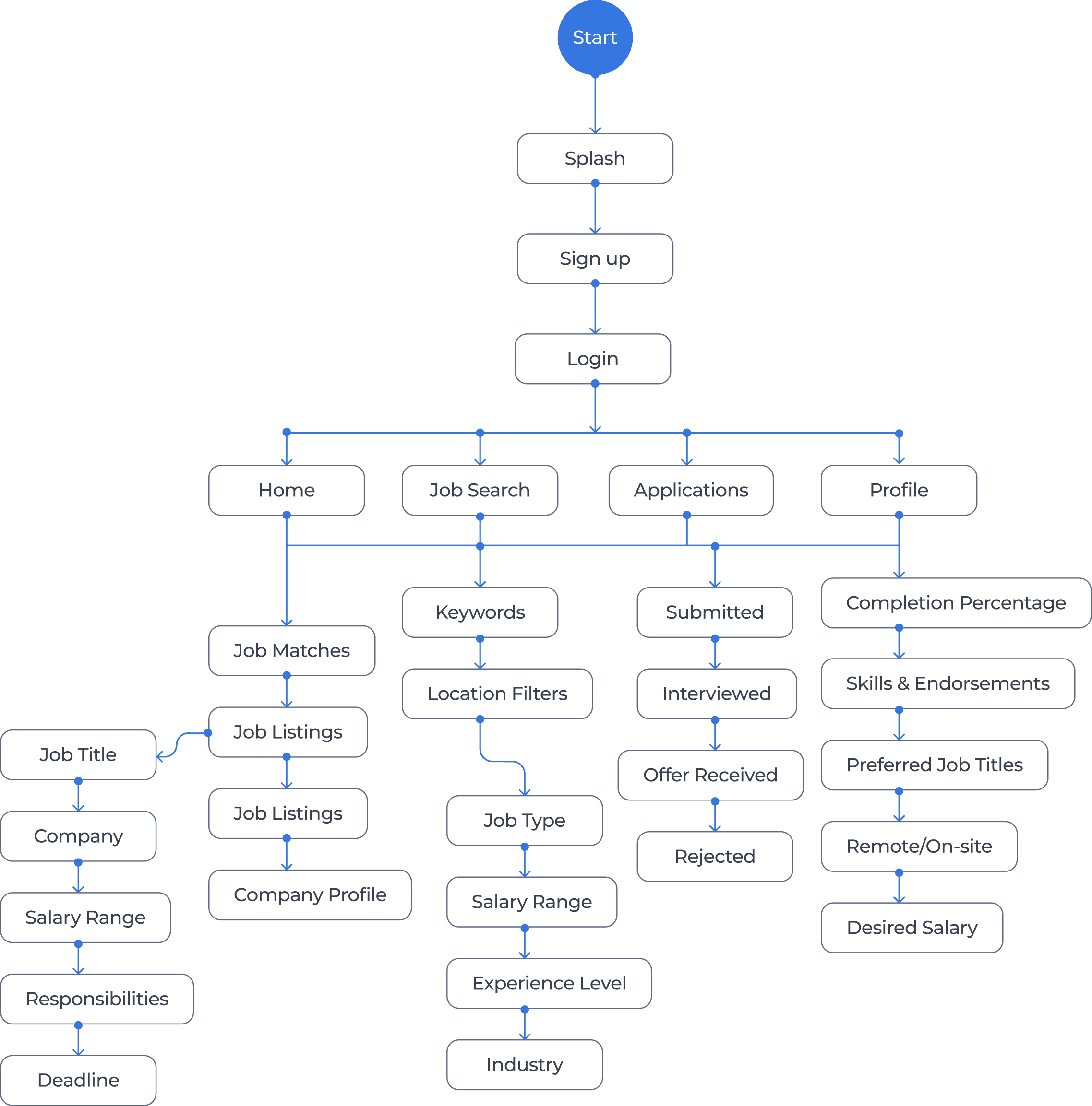 The objective was to design a user-centric platform that makes job searching simple, fast, and personalized. The focus was on enhancing search functionality, improving job relevance, and ensuring a seamless application process for both job seekers and employers.