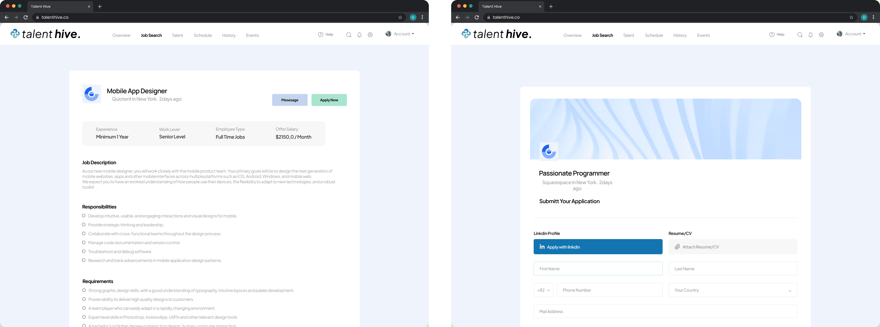 Talent Hive is a dynamic job-finding platform designed to connect job seekers with tailored opportunities through advanced search filters and personalized recommendations. With its user-friendly interface, Talent Hive simplifies the job search process, allowing users to easily explore, apply for, and track job applications.
